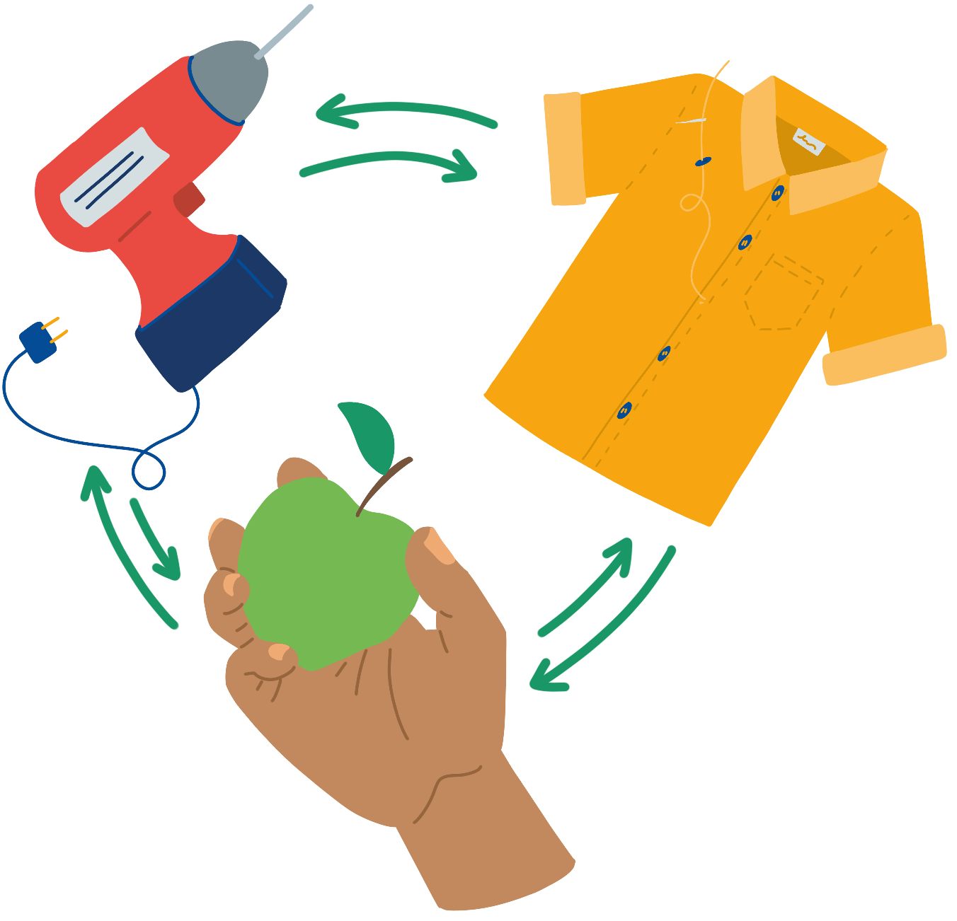 Consommer moins d’objets, réduire ses déchets, développer la réparation, sont des défis au cœur de la transition écologique. On peut proposer d’équiper notre MJC de gobelets et couverts réutilisables à prêter (si elle est d’accord bien sûr) aux associations pour les fêtes de quartier, ou encore d’installer une objethèque et outilthèque dans la médiathèque pour emprunter au lieu d’acheter les appareils et outils qu’on utilise peu souvent. Pour favoriser le réemploi, on pourrait aussi imaginer une étagère à don à côté des bennes à verres, pour y disposer les bocaux dont nous n’avons plus besoin, qui seront utiles à d’autres au lieu d’être détruits.